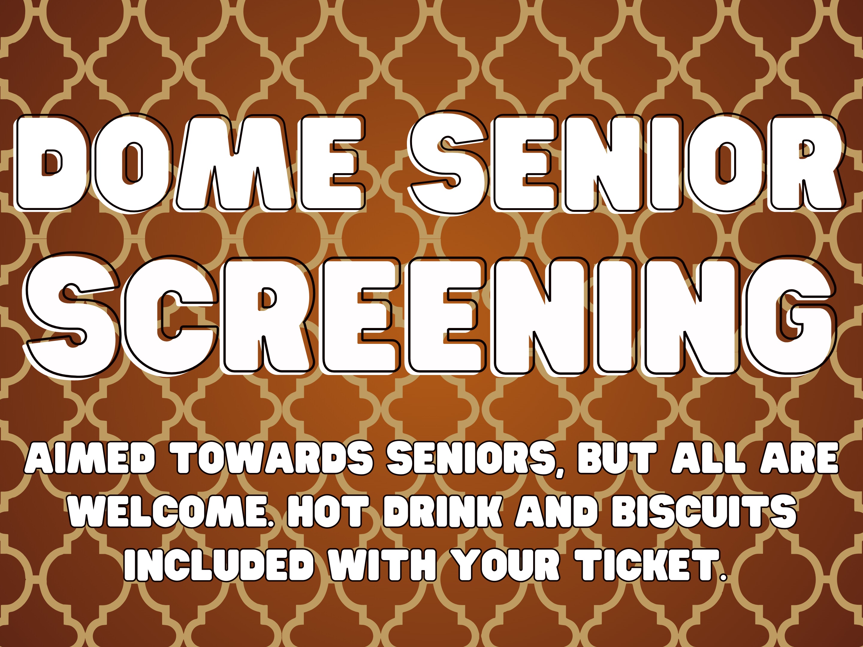 Dome Seniors provides a cozy and comforting atmosphere akin to watching a movie at home, but with the added charm of a big screen and shared experience. Creating a great opportunity to strengthen the community, increase social interactions, creating the chance to meet new people, see older movies on the big screen, and share stories over a cup of tea and biscuits